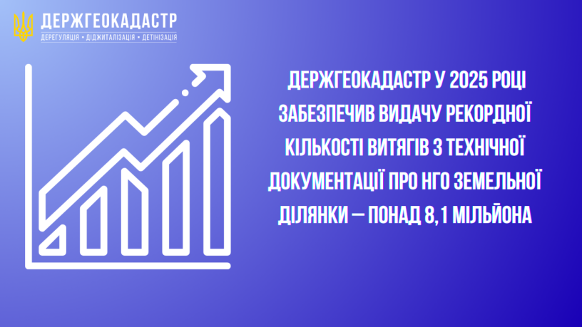 Із зазначених 8,1 млн витягів з технічної документації про НГО земельної ділянки автоматично системою було сформовано 95%, відповідно 408 415 витягів було опрацьовано працівниками Держгеокадастру в областях.