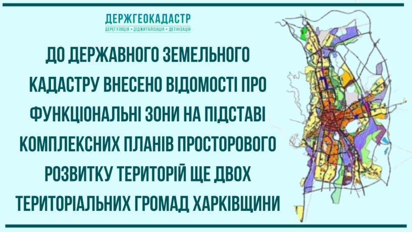 У вересні-жовтні 2025 року до Державного земельного кадастру внесено відомості про функціональні зони на підставі комплексних планів просторового розвитку територій Пісочинської та Солоницівської територіальних громад Харківської області.